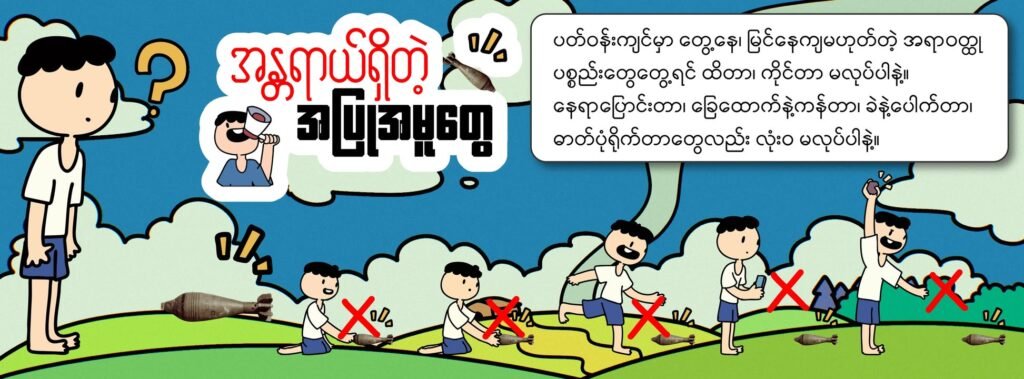 လေကြောင်းကနေ ဗုံးကြဲတဲ့အခါ အသက်မသေအောင် ကာကွယ်ဖို့ဆိုပြီး တူးခဲ့တဲ့ ဗုံးခိုကျင်းက မိသားစုဝင် ငါးဦးကို သတ်ပြီး စွန့်ပစ်ထားစရာ နေရာ ဖြစ်သွားသတဲ့လား။ အသတ်ခံရတာ သိပေမယ့်လည်း စစ်ကြောင်းထိုးနေဆဲမို့ ရွာထဲ မဝင်ရဲလို့ ရက်လည်ပြီးမှ သဂြိုလ်ရတဲ့ ဖြစ်ရပ်ကို ပြန်မတွေးချင်တော့ဘူး ဆိုပေမယ့် မျက်စိထဲမှာ ပြန်မြင်ယောင်နေတုန်း၊ လူရုပ်တောင် မပေါ်တော့တဲ့ သူတို့တွေကို သဂြိုလ် ပေးခဲ့ရတာ မေ့နိုင်ပါ့မလားလေ။