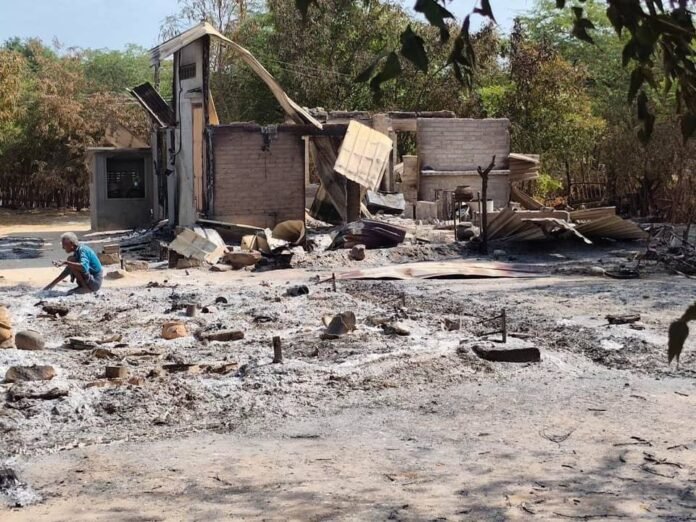 မသင်းတို့အဖွဲ့ ရောက်သွားတော့ မီးလောင်တိုက်သွင်းခံထားရတဲ့ စဘေရွာကို ပြာပုံတွေကြားမှာ ဖရိုဖရဲဖြစ်ကျန်ရစ်တာ တွေ့ရတယ်။