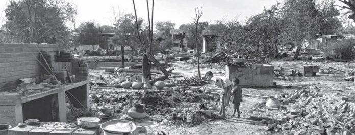 မီးဘေးသင့် ပြည်သူတွေဟာ မီးလောင်ကျွမ်းပြီး ကျန်ရစ်ခဲ့တဲ့ သွပ်မိုးတွေကို အမိုးအကာအဖြစ် ကာရံထားပြီး မီးလောင်ပြာကျခဲ့ရတဲ့ နေအိမ်တွေရဲ့ နေရာမှာပဲ ယာယီနေထိုင်နိုင်ဖို့ ဆောက်လုပ်ထားကြ တယ်လို့ သူက ဆက်ပြောပြပါတယ်။