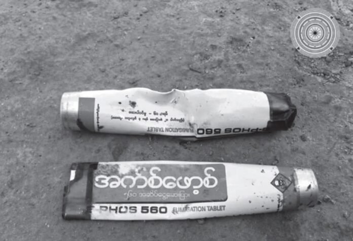 ပြီးခဲ့တဲ့ ဒီဇင်ဘာလ ၇ ရက်နဲ့ ၈ ရက် နေ့တို့မှာ အာဏာသိမ်းစစ်တပ်ရဲ့ မိုးဗြဲမြို့အခြေစိုက် ခမရ (၄၂) တပ်က ကြဲချခဲ့တဲ့ ဒရုန်းဗုံးတွေမှာ S – PHOS (အက်စ်ဖော့စ်) တံဆိပ်ပါ ၅၆ဝ အဆိပ်ငွေ့ပြားတွေကို ထည့်သွင်းအသုံးပြု တိုက်ခိုက်ခဲ့တယ်လို့ ဆိုထားပါတယ်။
