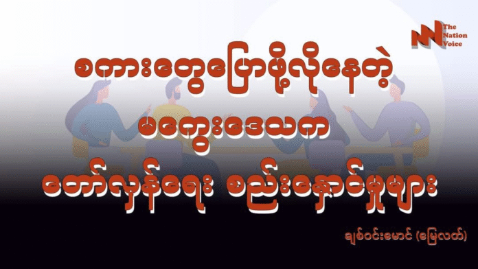 အဲဒီအတွက် တော်လှန်ရေးအင်အားစုတွေအချင်းချင်း ဆွေးနွေးမှုတွေလုပ်ဖို့၊ တွေ့ဆုံမှုတွေ လုပ်ဖို့ဆိုတာ လက်မတွန့်သင့်တဲ့ ကိစ္စတွေဖြစ်တယ်လို့ရှုမြင်မိပါတယ်။ဆွေးနွေးညှိနှိုင်တယ်ဆိုတာကလည်း ဒီမိုကရေစီကျင့်စဥ်ရဲ့ အခြေခံ လုပ်နည်းလုပ်ဟန်တခုလည်းဖြစ်ပါတယ်။